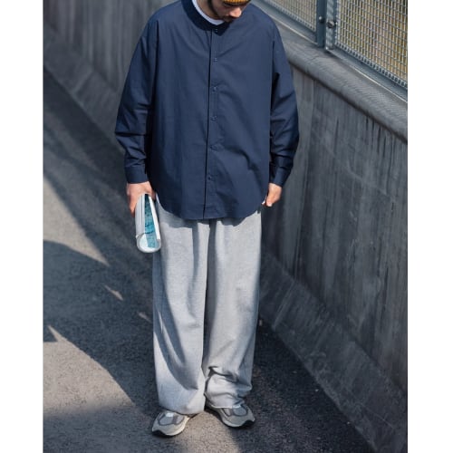 ノーカラーロングスリーブシャツ ネイビー vi1119