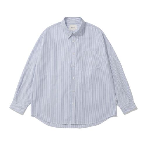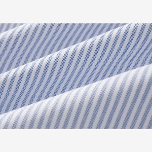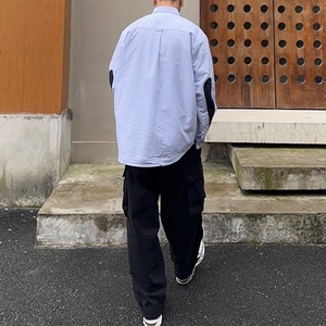 袖のドロップ切り替えデザインが目を惹くストライプシャツ。
