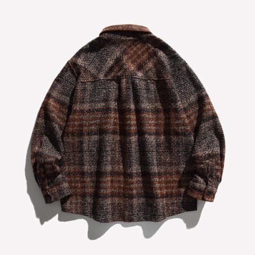 シャツでもアウターでも着用できるチェック柄の長袖シャツ。
