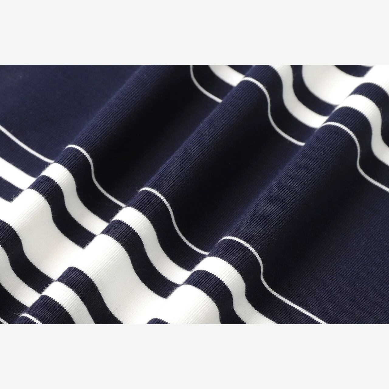 太さの異なるボーダー柄を組み合わせたロングスリーブTシャツ。