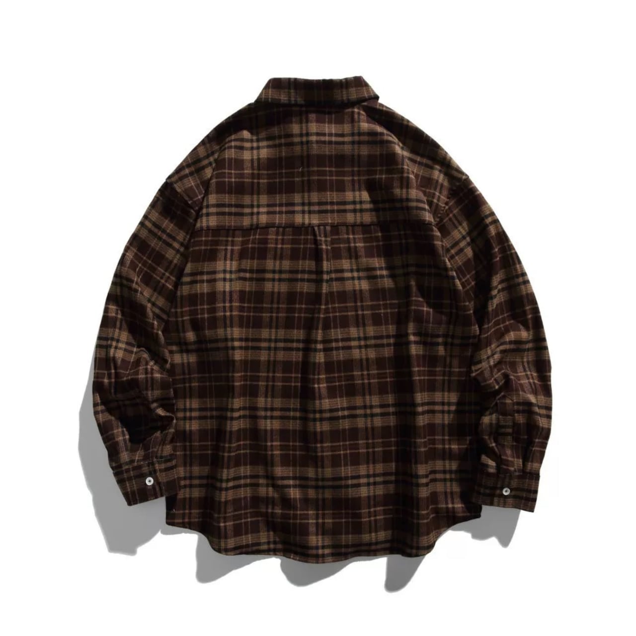 落ち着いた配色のチェック柄が映えるルーズシルエットシャツ。