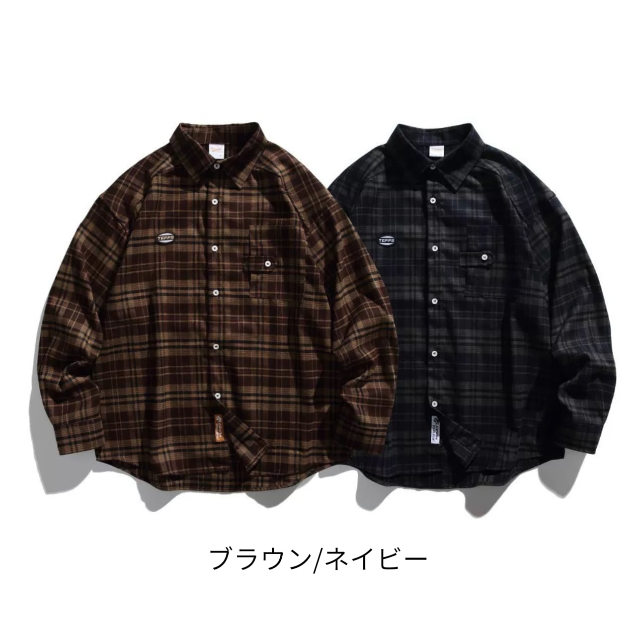 ブラウンとネイビーの2色展開で、羽織りにも使える万能な一枚です。