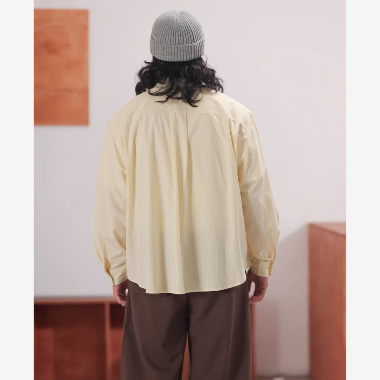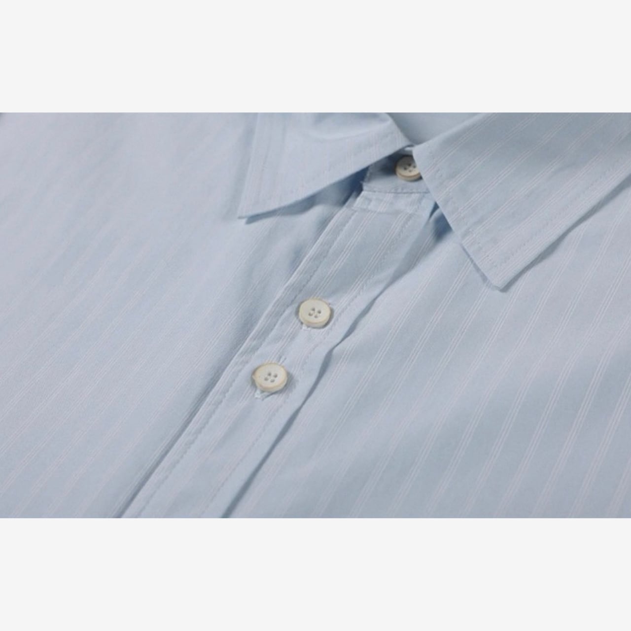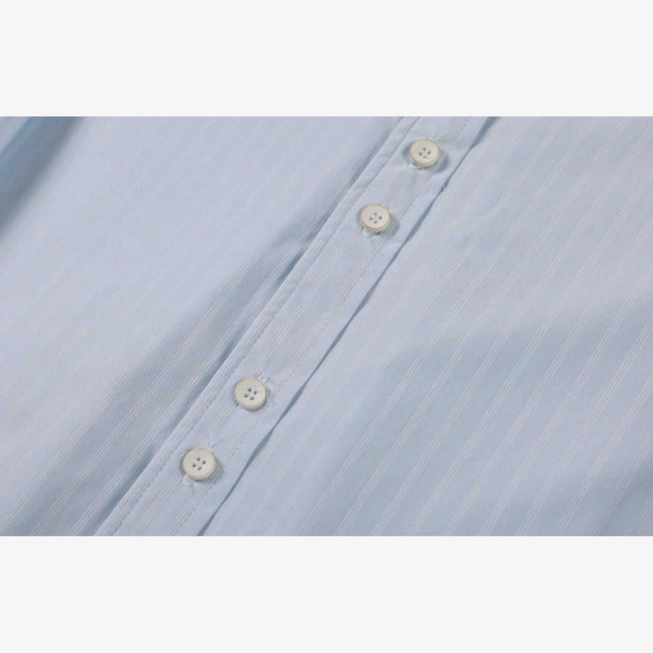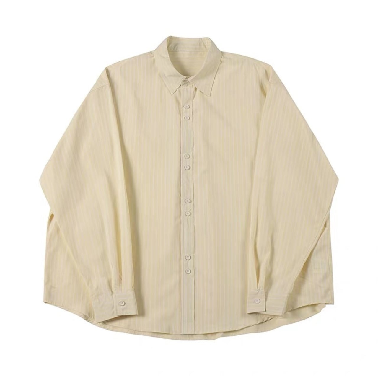 細ストライプ柄がすっきり見えするオーバーシャツ。