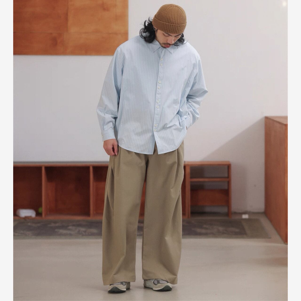 デニムからスラックスまで合わせやすく、着こなしを引き立てる一枚です。