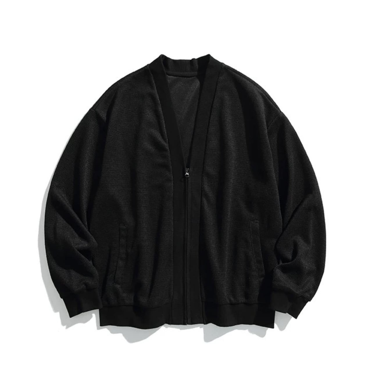 Vネックとジップを組み合わせたカーディガンジャケット。