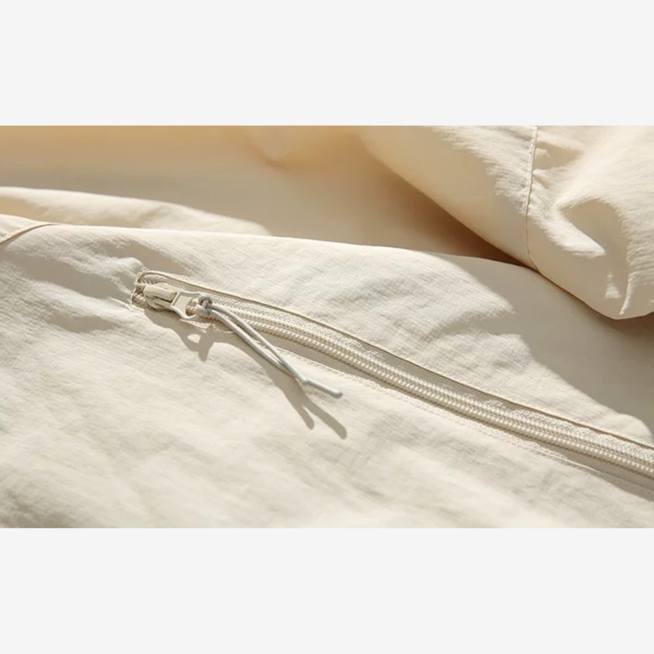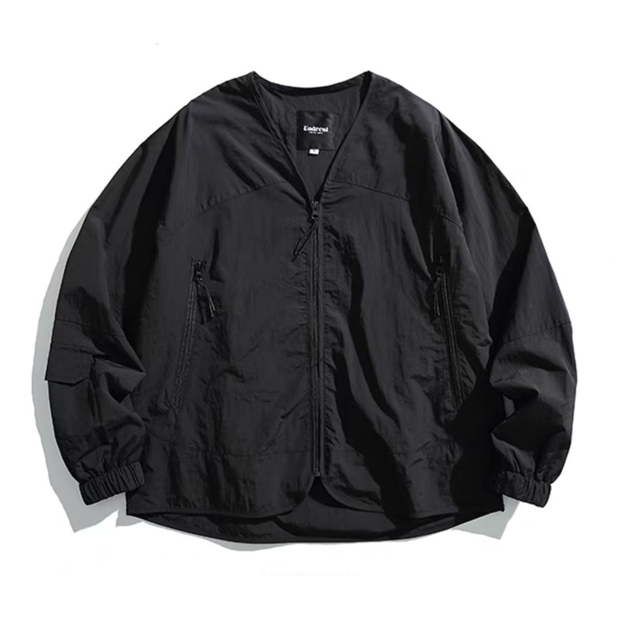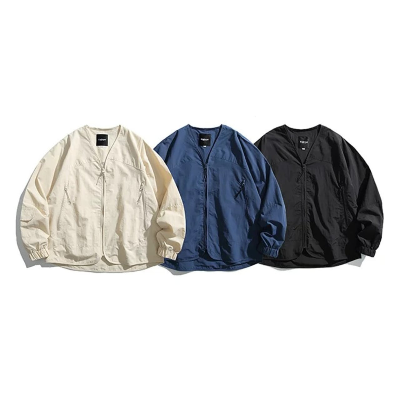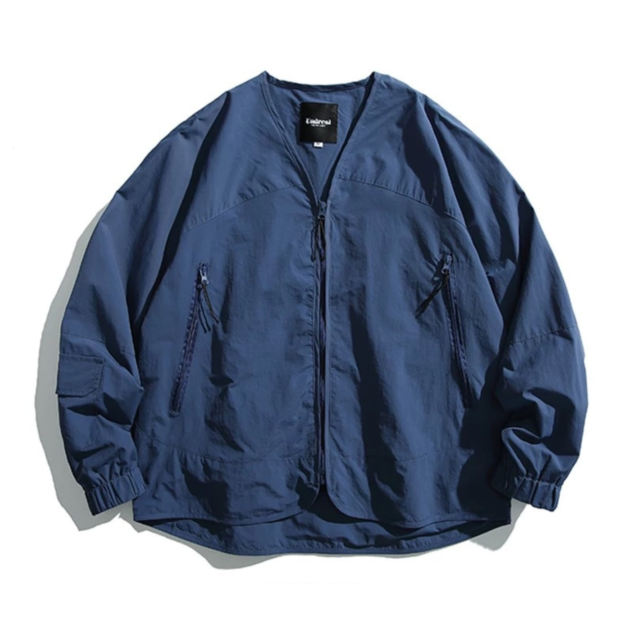 ノーカラーとジップアップ仕様で、すっきりとした印象に仕上げたブルゾン。