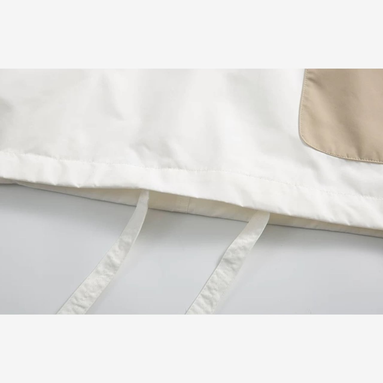 フロントにはバイカラーのポケットを配し、袖口のテープ仕様や裾のドローコードでシルエットの調整も可能です。