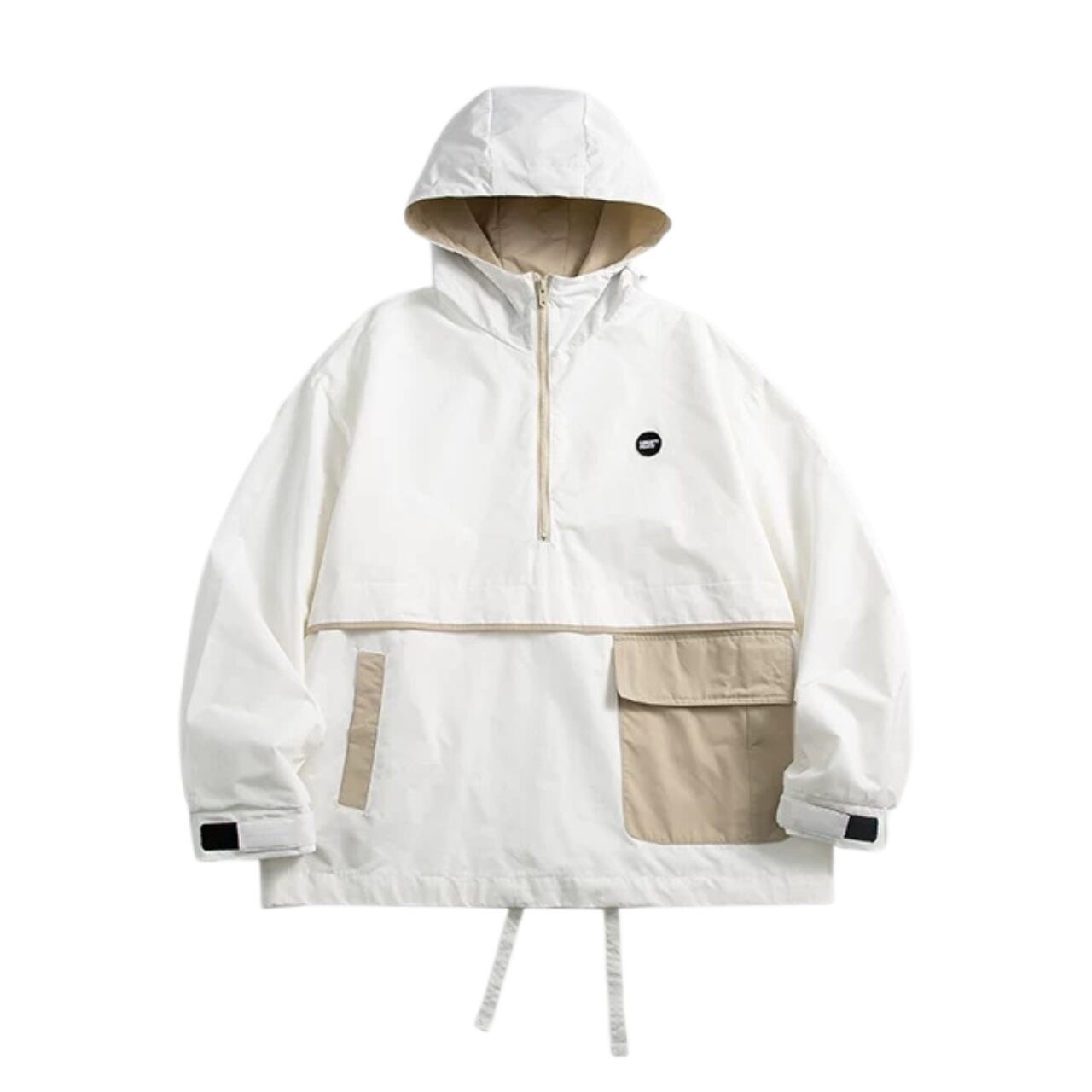 配色ポケットがアクセントになった、フード付きのハーフジップブルゾン。