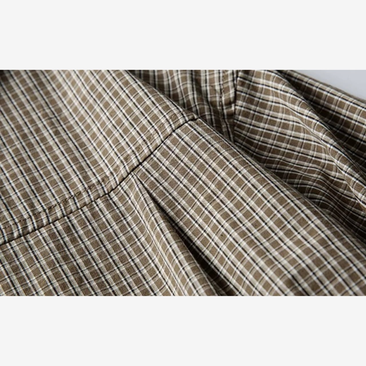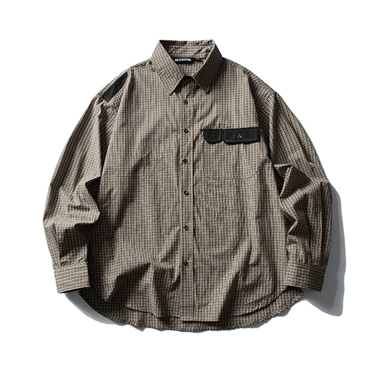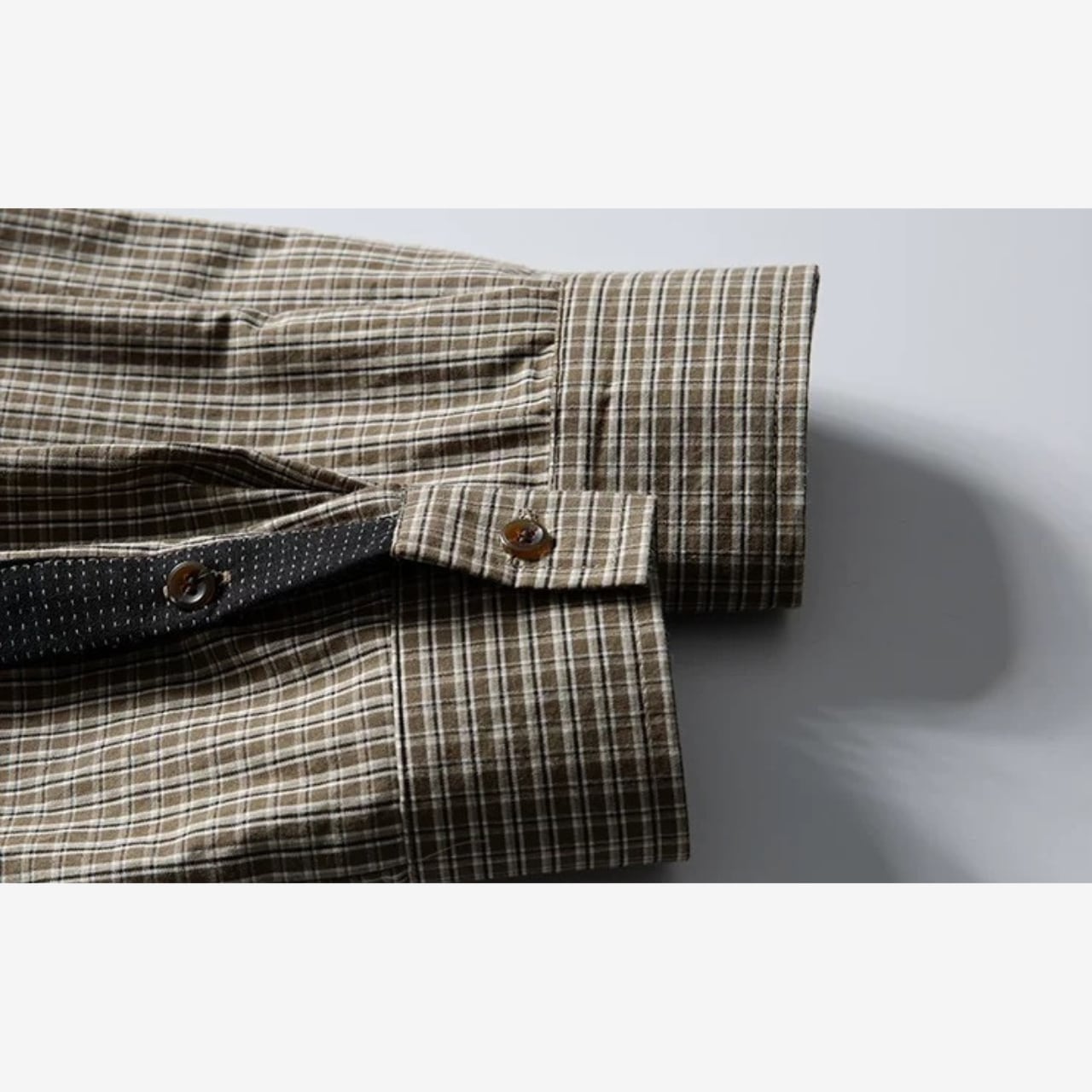 細かなチェック柄に、フラップ付きポケットを組み合わせたシャツ。