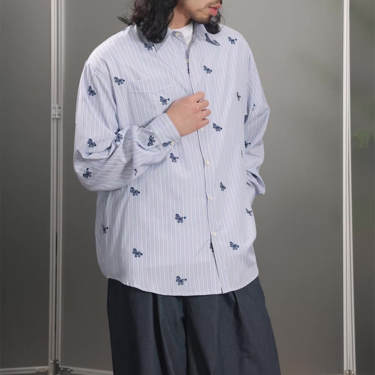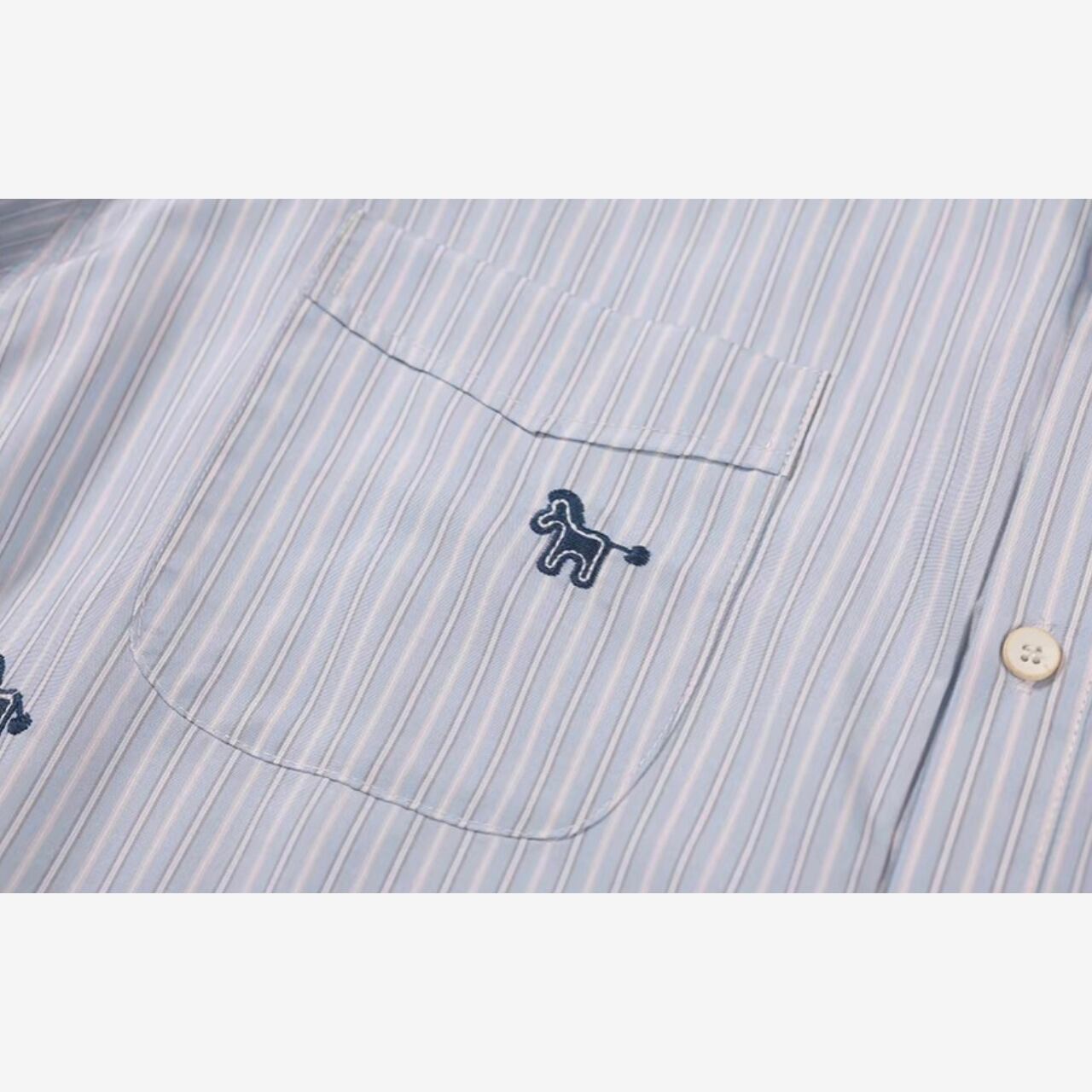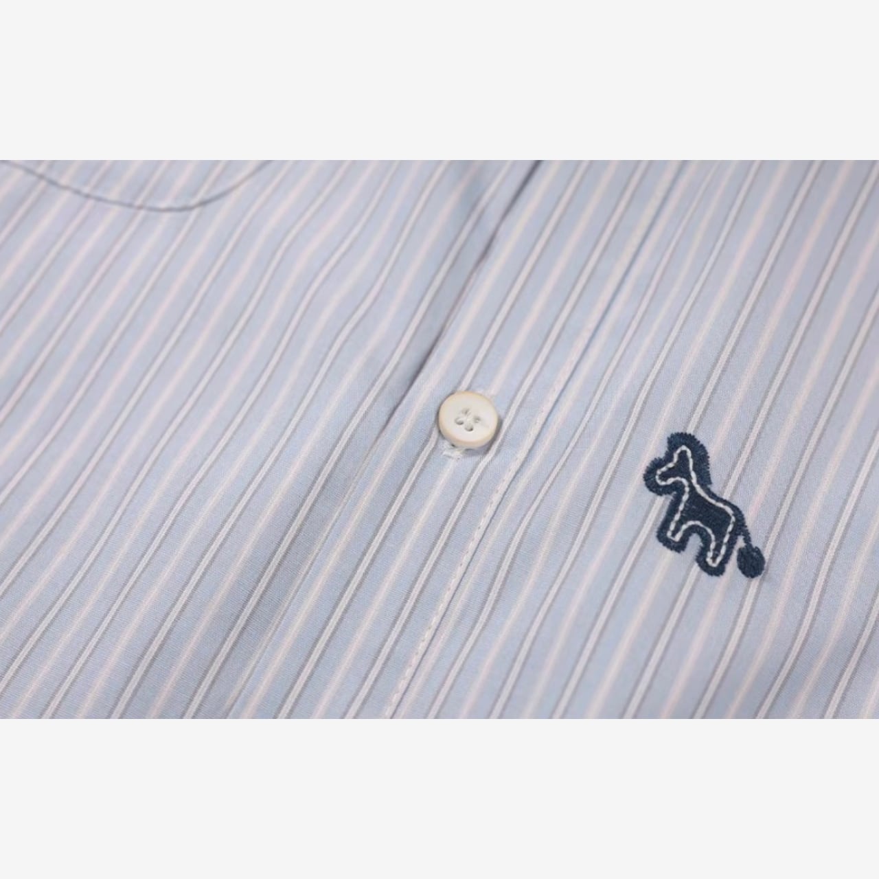 細めのストライプにポニーモチーフを散りばめたデザインのシャツ。